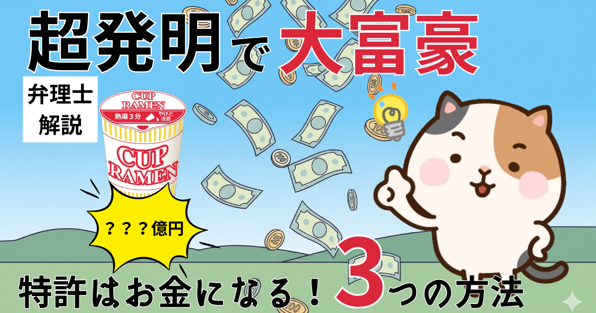 他社へライセンスした有名な特許の例としてはカップラーメンの特許があります。